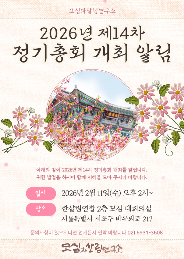 <모심과살림연구소 2026년 제14차 정기총회 개최 안내>